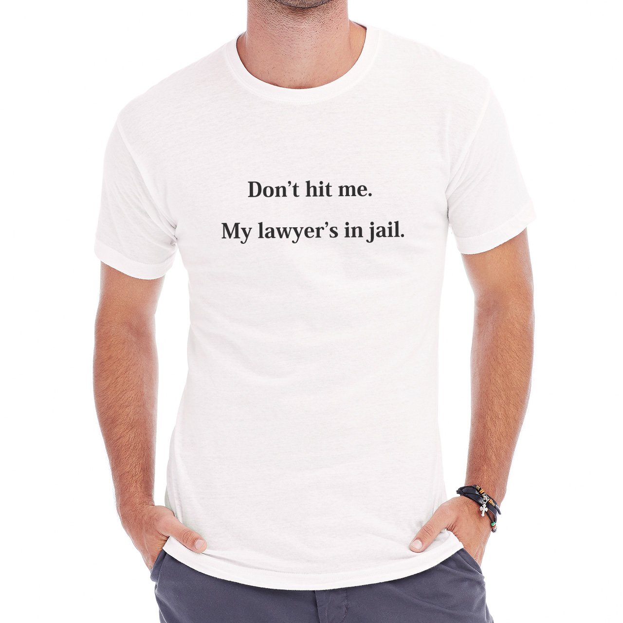 “Don’t Hit Me My Lawyer’s In Jail” t shirt.